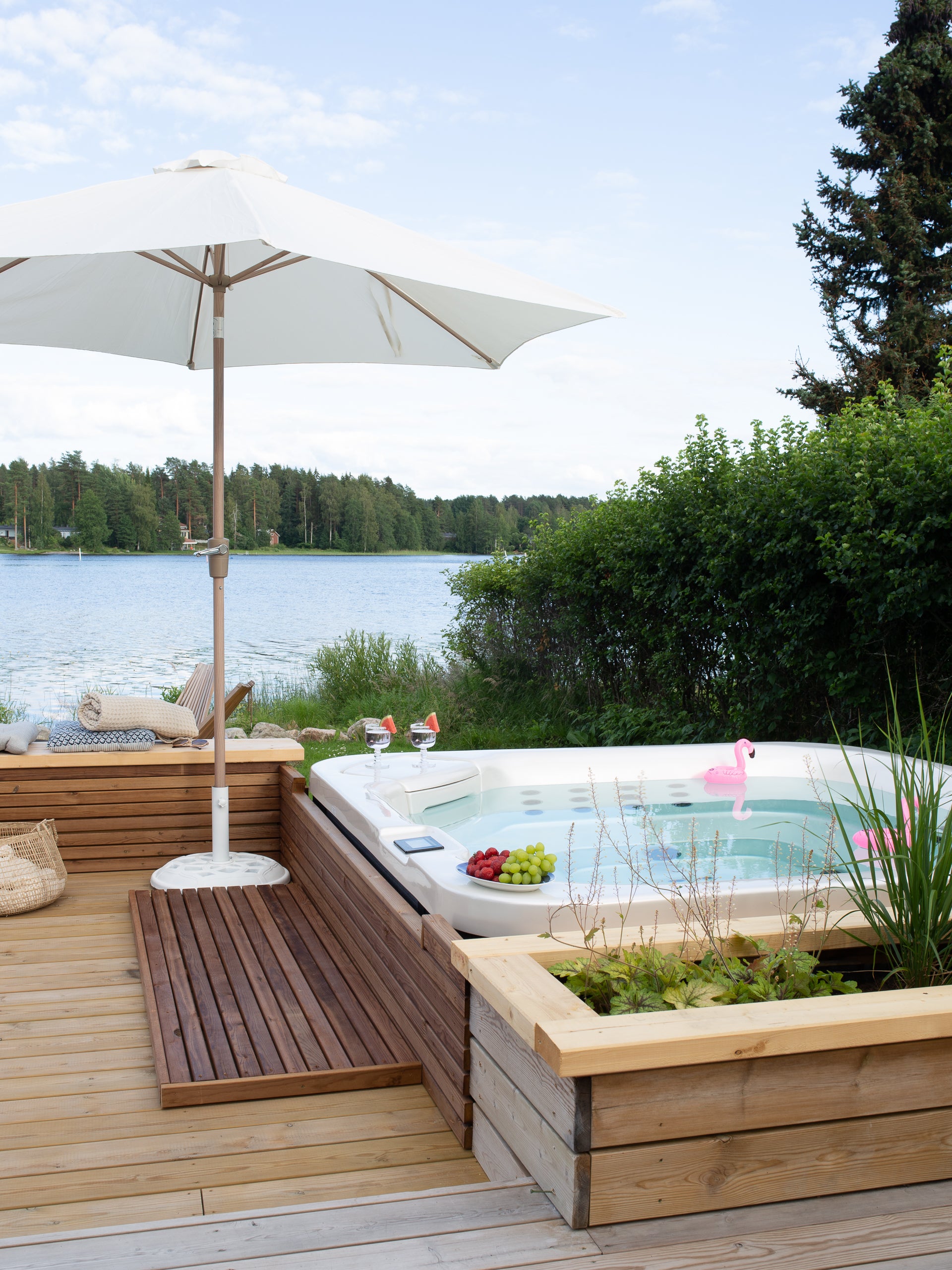 Tiefe Massageplätze für mehr Komfort. Je höher das Profil, desto tiefer sitzt du im warmen Wasser. Zudem steigt der Windschutz mit der Höhe an. Personen die größer als 1,85 m sind, empfehlen wir das Modell Serenity (Profilhöhe 102 cm).
